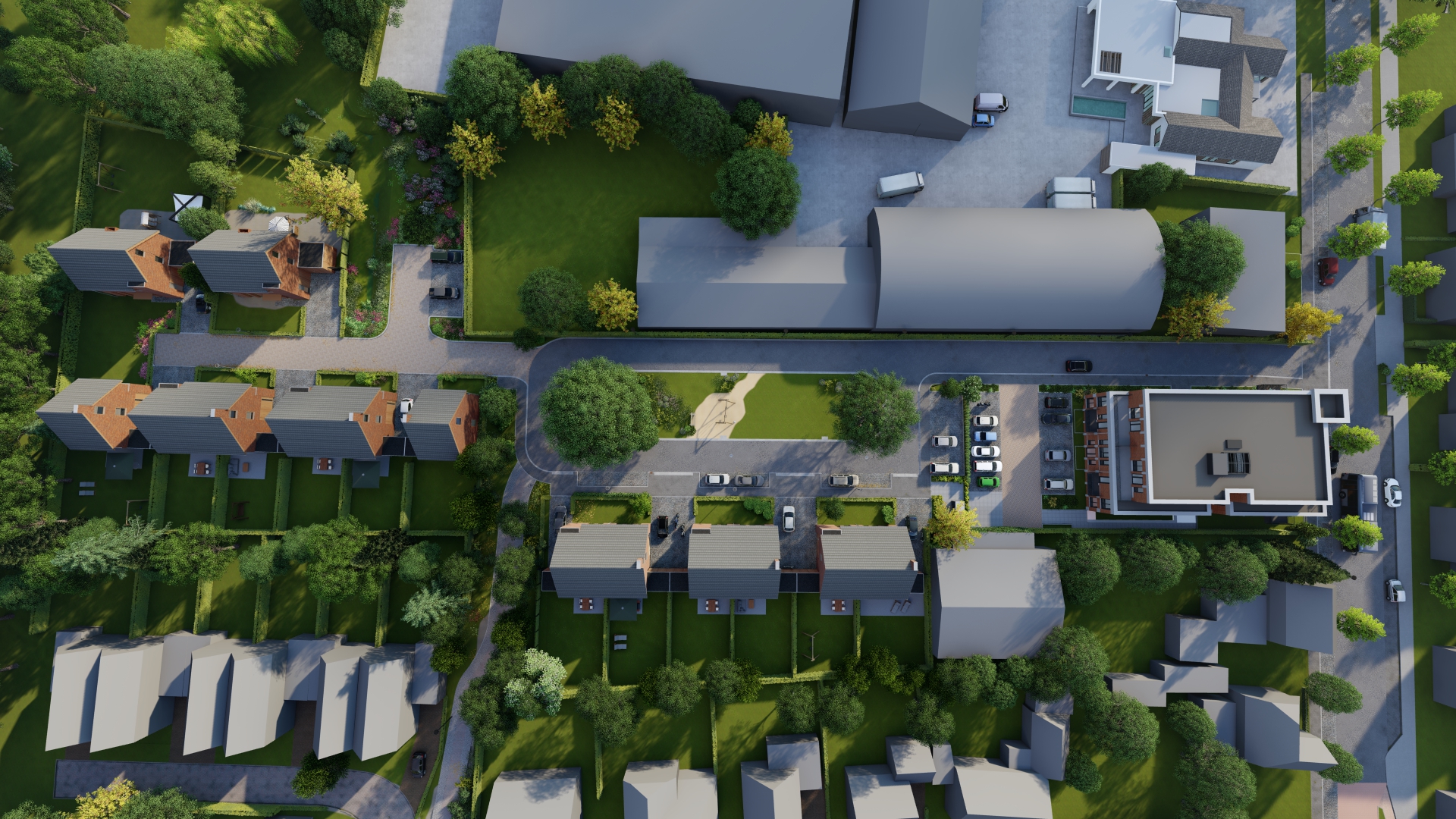 Percelen variërend van 252 m² tot 406 m² voor de tweekappers en percelen van ca. 600 m² voor de vrijstaande woningen.